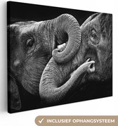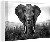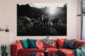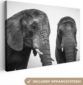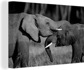 Tableau sur toile Éléphants dans la jungle - noir et blanc - 150x100 cm - Décoration murale