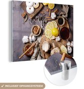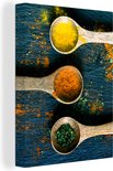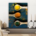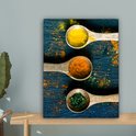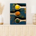 Tableau sur toile Épices - Cuillère - Herbes - Marron - Jaune - Vert - 30x40 cm - Décoration murale