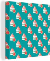 Tableau sur toile Été - Blauw - Vert - 20x20 cm - Décoration murale