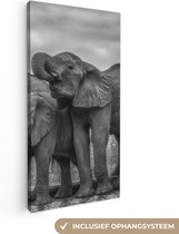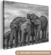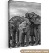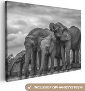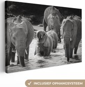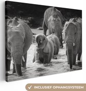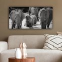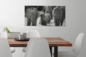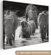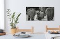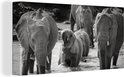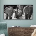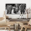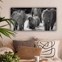 Tableau sur toile Famille éléphants dans l'eau en noir et blanc - 80x40 cm - Art Décoration murale