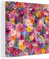 Toile Peinture Fleurs - Couleurs - Collage - 90x90 cm - Décoration murale