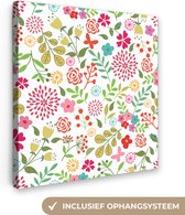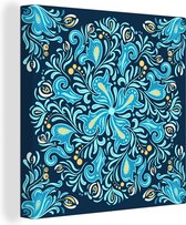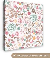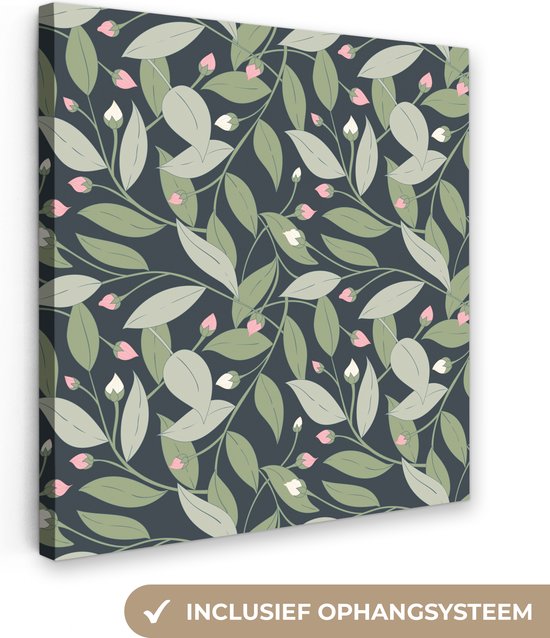 Tableau sur toile Fleurs - Feuilles - Motifs - 90x90 cm - Décoration murale