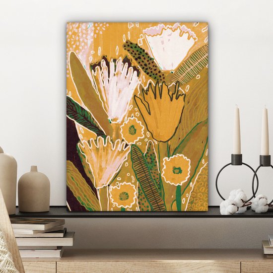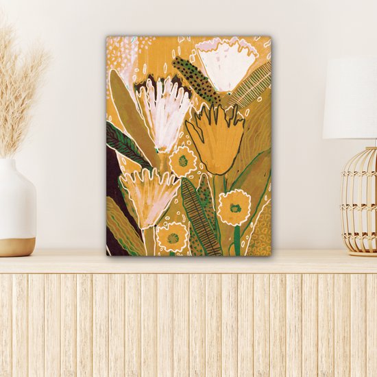 Tableau sur toile Fleurs - Jaune - Couleurs - Plantes - 30x40 cm - Décoration murale