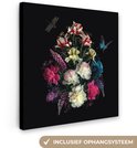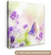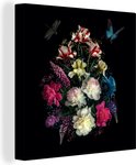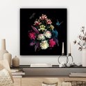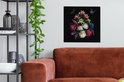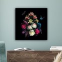 Tableau sur toile Fleurs - Papillon - Nature morte - 50x50 cm - Décoration murale