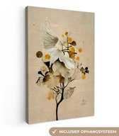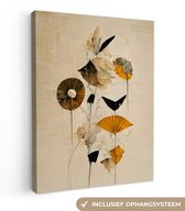 Tableau sur toile Fleurs - Vintage - Plantes - Or - 20x40 cm - Décoration murale