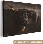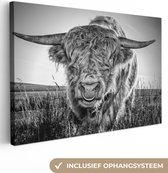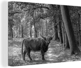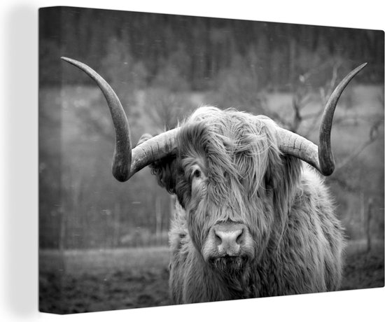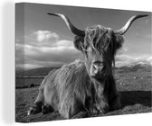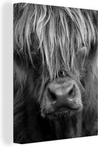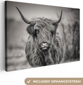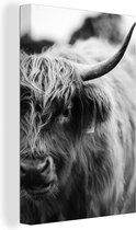Tableaux sur toile - Highlander écossais regarde droit dans la caméra - noir et blanc - Salon - Chambre