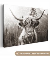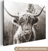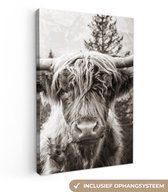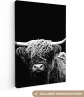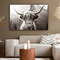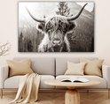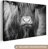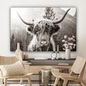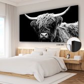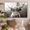 Tableau sur toile Highlander écossais - Vache - Animaux - Zwart - Wit - 120x80 cm - Décoration murale