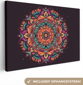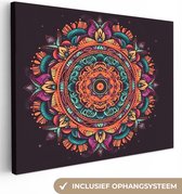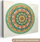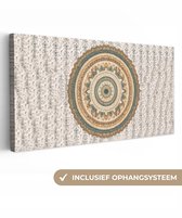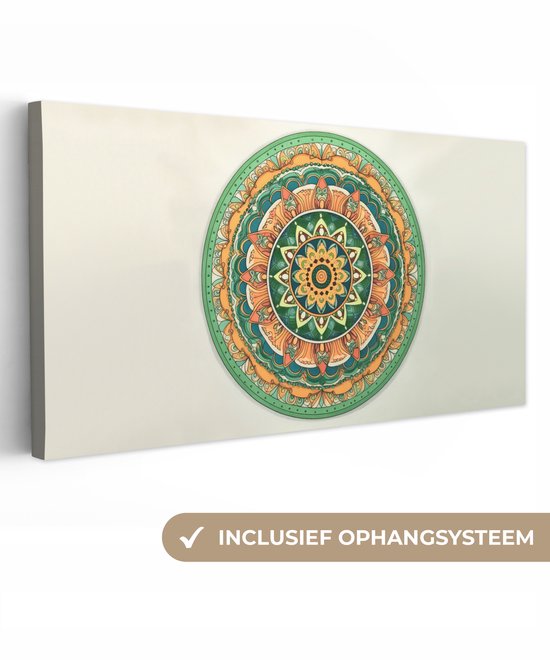 Tableau sur toile Hippie - Mandala - Vert - Boho - Fleurs - 80x40 cm - Décoration murale