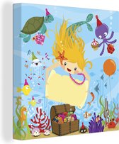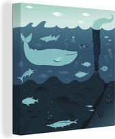 Tableau sur toile Illustration d'une baleine dans l'eau - 50x50 cm - Décoration murale