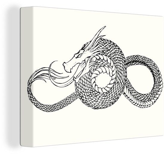 Tableau sur toile Illustration tatouage de dragon - 40x30 cm - Décoration murale