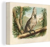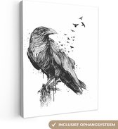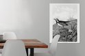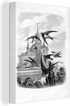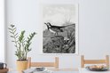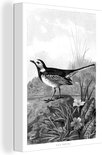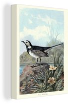 Tableau sur toile imprimé oiseau vintage bergeronnette blanche - noir et blanc - 60x80 cm - Décoration murale