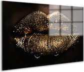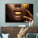 Peintures sur toile - Or - Femme - Peinture - Lèvres - Luxe - Salon - Chambre