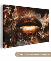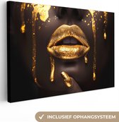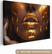 Tableau sur toile - Lèvres or 120x80 - Accessoires de décoration de chambre - Tableaux dorés femme salon - Décoration murale chambre - Décoration murale cuisine - Décoration murale - Tissu mural intérieur - Décoration maison - Accessoires de maison
