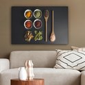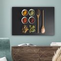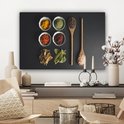 Tableau sur toile Louche - Épices - Herbes - Vert - Marron - Rustique - 60x40 cm - Décoration murale