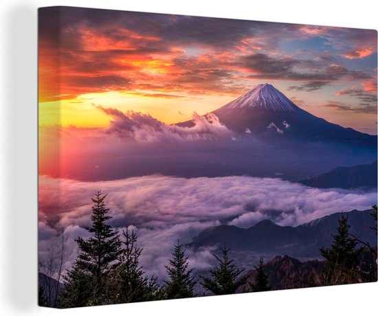 Tableau sur toile Montagnes - Nature - Brouillard - 120x180 cm - Décoration murale XXL