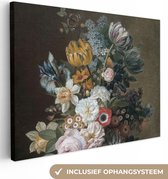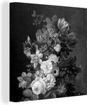 Tableau sur toile Nature morte aux fleurs - Peinture de Eelke Jelles Eelkema - noir et blanc - 20x20 cm - Décoration murale