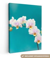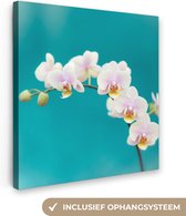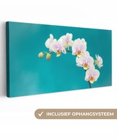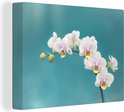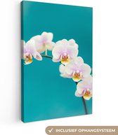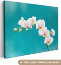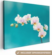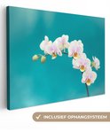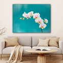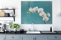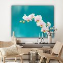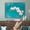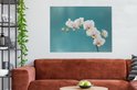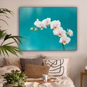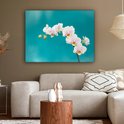 Tableau sur toile Orchidées Witte sur fond bleu - 120x90 cm - Décoration murale