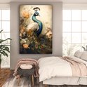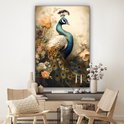 Tableau sur toile Paon - Plumes de paon - Fleurs - Vogels - Botanique - 120x180 cm - Décoration murale XXL