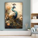 Peintures sur toile - Paon - Plumes de paon - Fleurs - Vogels - Botanique - Salon - Chambre à coucher