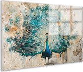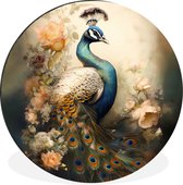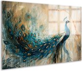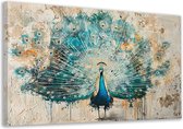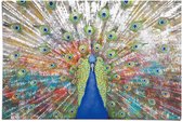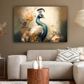 Tableau sur toile Paon - Plumes de paon - Fleurs - Vogels - Botanique - 120x80 cm - Décoration murale