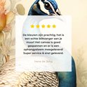 La photo est imprimée sur une toile robuste de 260 grammes de 0,41 mm d'épaisseur. Le lin est tendu étroitement sur un cadre en bois de deux centimètres d'épaisseur. Ce cadre en bois est fabriqué à partir de bois de pin de qualité approuvé FSC. Un système de suspension peut être commandé en option avec le produit pour fixer facilement l'impression au mur.