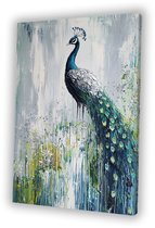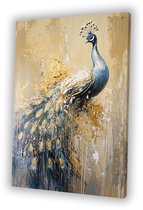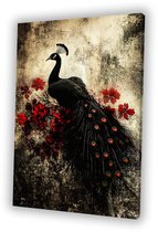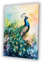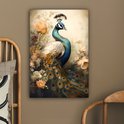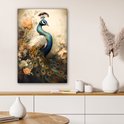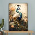 Tableau sur toile Paon - Plumes de paon - Fleurs - Vogels - Botanique - 60x90 cm - Décoration murale