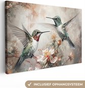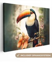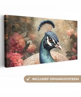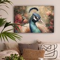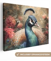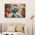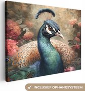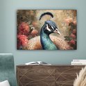Tableau sur toile Paon - Vogel - Fleurs - Plantes - Plumes de Paon - 60x40 cm - Décoration murale