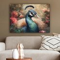 Tableau sur toile Paon - Vogel - Fleurs - Plantes - Plumes de Paon - 80x60 cm - Décoration murale