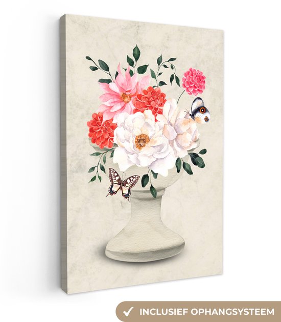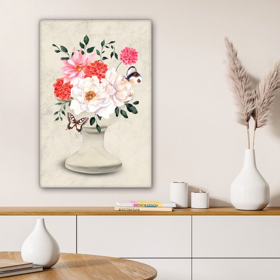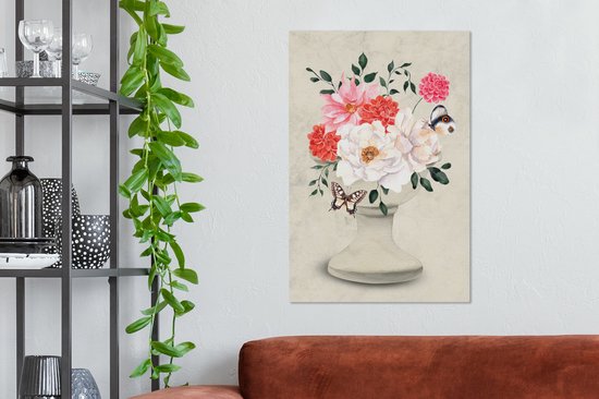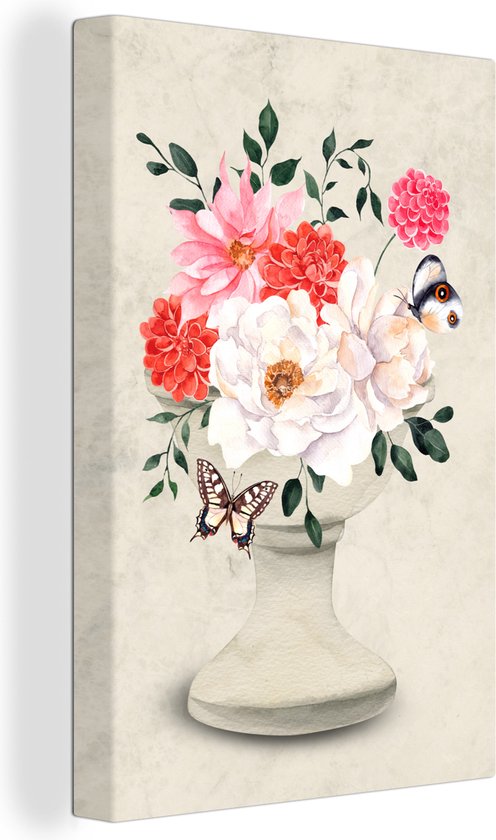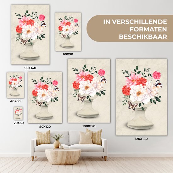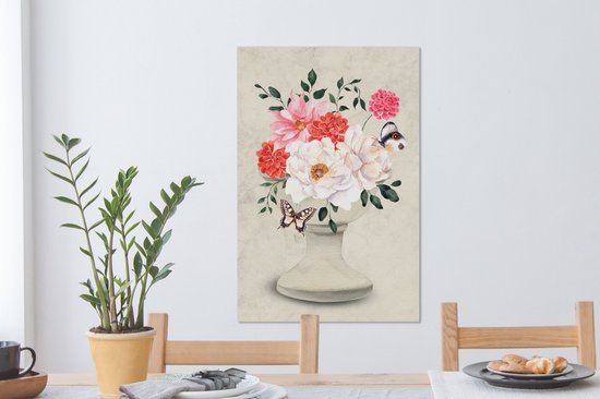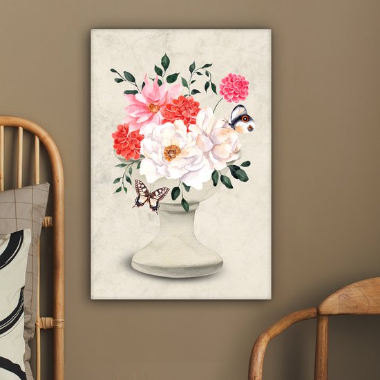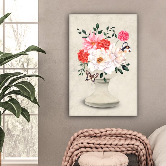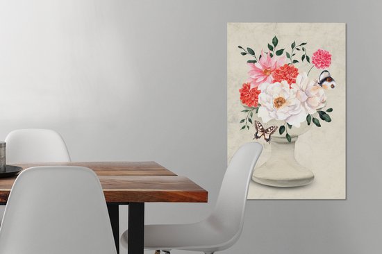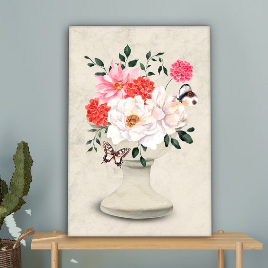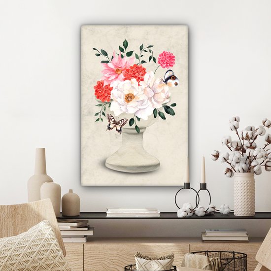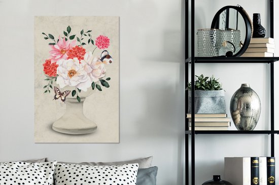 Tableau sur toile Papillons - Fleurs - Nature morte - 60x90 cm - Décoration murale