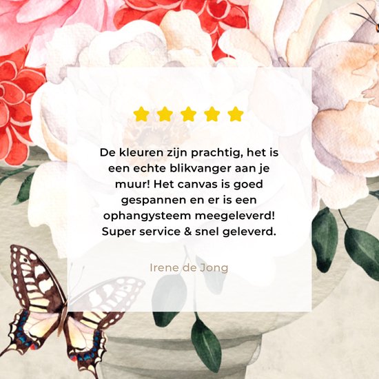 Cette belle peinture est imprimée sur la toile dans la plus haute résolution. Cela garantit une impression ultra nette et inaltérable sur une toile aux couleurs vives. Les côtés de la toile sont imprimés avec fond perdu de la photo. De cette façon, ces côtés de la toile correspondent également bien à la photo.