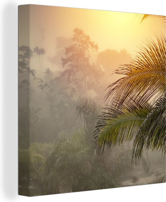 Tableau sur toile Paysage avec brouillard et palmiers - 20x20 cm - Décoration murale