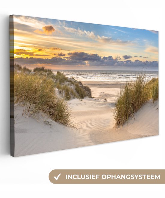Tableaux sur toile - Coucher de soleil - Vue mer - Nature - Dunes - Toile Décoration murale