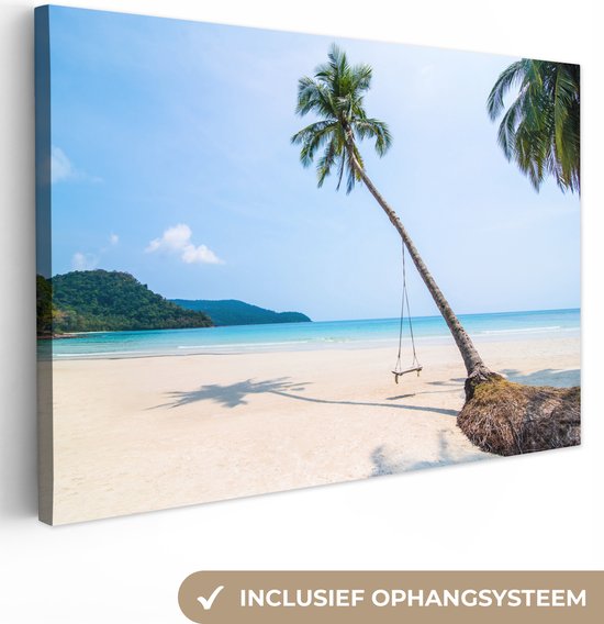 Tableau sur Toile Plage - Palmiers - Balançoire - 120x80 cm - Décoration murale
