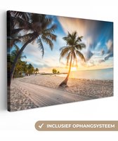 Le soleil se couche sur une plage tropicale Toile 120x80 cm - Tirage photo sur toile (Décoration murale salon / chambre) / Mer et plage