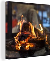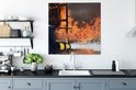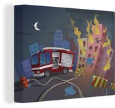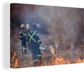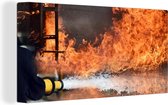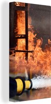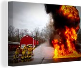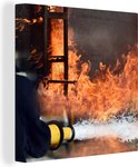 Tableau sur toile Pompiers tire de la mousse en feu - 90x90 cm - Décoration murale