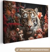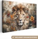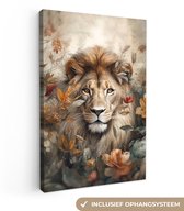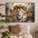 Peintures sur toile - Lion - Animaux sauvages - Plantes - Nature - Fleurs - Salon - Chambre