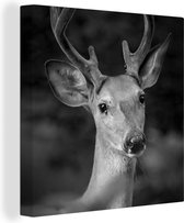 Tableau sur toile Profil animal cerf en noir et blanc - 30x20 cm - Décoration murale