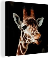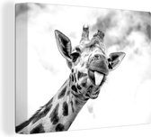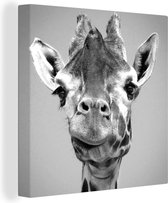 Tableau sur toile Profil animal girafe en noir et blanc - 90x90 cm - Décoration murale