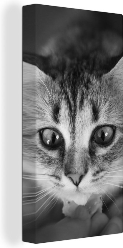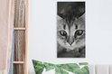 Tableau sur toile représentant un chat reniflant, de profil, en noir et blanc - 20 x 40 cm - Décoration murale