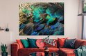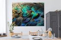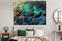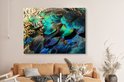 Tableau sur toile Ressorts - Plumes de Paon - Paon - Blauw - Art - 160x120 cm - Décoration murale XXL