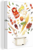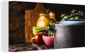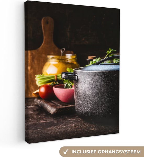 Légumes sortant d'une casserole toile 2cm 120x160 cm - Tirage photo sur toile (Décoration murale salon / chambre) XXL / Groot format!