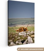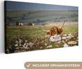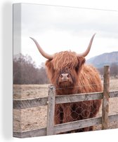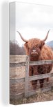 Tableau sur Toile Scottish Highlander - Herbe - Clôture - 20x40 cm - Décoration murale
