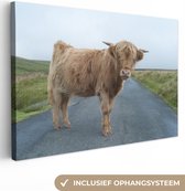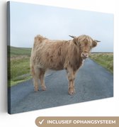 Tableaux sur toile - Highlander écossais - Route - Herbe - Salon - Chambre