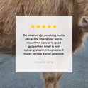 La photo est imprimée sur une toile robuste de 260 grammes de 0,41 mm d'épaisseur. Le lin est tendu étroitement sur un cadre en bois de deux centimètres d'épaisseur. Ce cadre en bois est en bois de pin certifié PEFC de qualité. Un système de suspension peut être commandé en option avec le produit pour fixer facilement l'impression au mur.