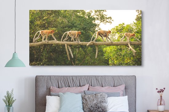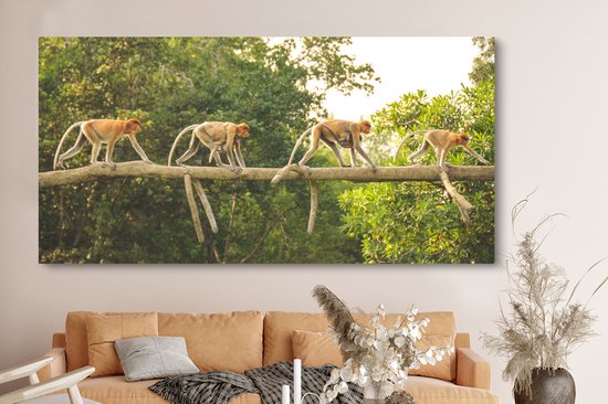 Tableau sur toile Singes marchant sur une branche - 160x80 cm - Décoration murale