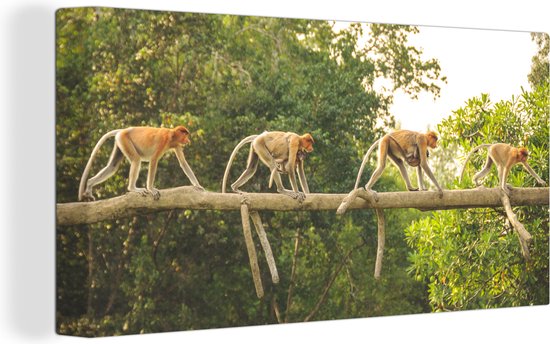 Tableau sur toile Singes marchant sur une branche - 80x40 cm - Décoration murale
