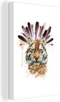 Tableau sur toile Tigre - Klein - Wit - 40x60 cm - Décoration murale