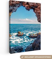 Enrichissez votre intérieur avec une toile de OneMillioncanvasses ! La peinture sur toile montre une grotte avec vue sur le soleil.