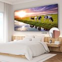 Tableau sur toile Vaches pendant un coucher de soleil - 160x80 cm - Décoration murale Art