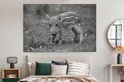 Tableau sur toile Veau sanglier dans l'herbe - noir et blanc - 150x100 cm - Décoration murale